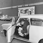 City editors are known for getting into and out of tight places, but Charlie Boatner found that getting out of the new small car, the pride and joy of Chief Photographer Joe McAulay, was a squeeze indeed.