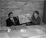 Edward Doody points to results of major league baseball survey and public's desire for new stadium; Mayor Tommy Vandergriff sits at his left, 02/28/1959