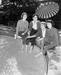 These girls and 26 others traveled from the University of Oklahoma to Fort Worth Friday to celebrate a night out together as pledges of the Delta Gamma sorority. They returned Saturday after hier stay at Western Hills. Left to right, Barbara Renfro, Susan Hoop Renfro, Susan Hoopes of Las Vegas, Tiki Taylor of Oklahoma, and Carol Hennessee of Lawton.