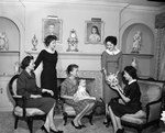 The Woman's Society auxiliary of the Society for Children and Adults with disabilities will sponsor a silver tea between 2 and 5 p.m. Tuesday at the home of Mr. and Mrs. A. M. Pate Jr. Proceeds will go toward the expansion project of the society. In the picture, left to right Mmes. Mark Hart, J. Halbert Woods, Lewis Gillis, holding her baby, Ellen; Mrs. Henry Kerry and Mrs. Dan Poland Jr.