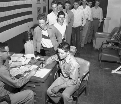 Korean War recruits for Army-Air Force in Fort Worth office, Master Sergeant Walter J. Dolbee Jr. in charge, 06/30/1950