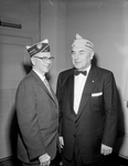 The present, the past, and the limited future dependent upon the longevity of members of the Veterans of World War I were touched upon Monday night by its national commander. Fred Hollenbeck of Capt. Vincent, N. Y. sounded a call to arms for the organization's biggest aim, congressional approval of pensions for all World War I veterans. In the picture, World War I veterans commanders Robert L. Davis, left, of Orange and Fred Hollenbeck of Cape Vincent, N.Y.