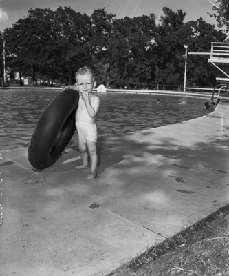 19-month-old Tommy Kennedy, son of Mr. and Mrs. H. J. Kennedy, at Marine Park pool. Published in the Fort Worth Star-Telegram in evening edition, July 1, 1950.