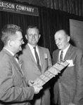 Claude Capers, P. E. Miley and Richard Hansen, (left to right) look over a display of printing equipment and swap ideas on printing techniques at Hotel Texas Sunday. They are here for a mechanical conference of the Southern Newspaper Publishers Association.