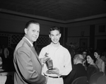 Kenton Jung gets the Arlington Athletic Association's "Most Conscientious Boxer" award from Association President Jim Young during the group's boxing banquet at Arlington.