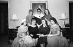 Winners of Daughters of the American Revolution "best citizen" awards, presented to high school girls by the Mary Isham Keith chapter of DAR, include, left to right, seated, Misses Ann Bozeman of Castleberry, Pat Kover of Handley, Doris Corey of Kennedale and Emma Jo King of Brewer, and standing, Gay Kitely of Lawrence D. Bell, Sara Bussey of Grapevine and Nell Saego of Mansfield.