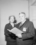 Education in a changing world must take into consideration the fact that work in the future will be done easier and better by electronics, R. N. Dyer of Houston said Friday night in an address at Hotel Texas. Miss Vivian Cobb, vice president of TJCTA, and R. N. Dyer.