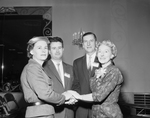 Delegates to a conference of junior college teachers and administrators adjourned Saturday afternoon after election of new officers and selection of Austin as next year's meeting site. Mrs. June Martin of Kilgore Junior College was elected president of the Texas Junior College Association, and Miss Vivian Cobb of Laredo Junior College was elected president of the Texas Junior College Teachers Association. Mrs. June Martin, Marvin Baker, Roy L. Glass, and Vivian Cobb (left to right).