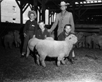 Billy Sartor, Newburg 4H; Billy Wheat, Comanche FFA, and David Bursh, Gustine FFA, left to right, were top lamb feeders. Standing is Gustine FFA adivisor Weldon Kirby.