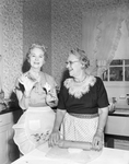 Mrs. W. B. Streetman, left, and Mrs. R. R. Moore, try out the Texas-shaped cookie cutters and Mrs. Price Daniel's family recipe for Texas tea cakes which are being sold by the Texas Federation of Women's Clubs for the professional nursing scholarship project.