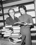 Mrs. Leon G. Cloud, left, chairman of a committee of the Tarrant County Veterinary Medical Auxiliary which will collect books for the Indian Reservation at Livingston, received the first gifts in the auxiliary's name from Mrs. C. D. Bourke.