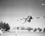 Southern Methodist's Don Stewart clears the high jump bar at 6-8 3/4 to win the university division event in Southern Recreation meet at Farrington Field. It tied record.