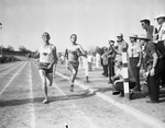 Howard Payne's Willie Myers noses out Hardin-Simmons Leslie Branham to win the mile run in the Recreation meet college division.