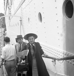 Mr. and Mrs. Bill Northern walk up the gangplank of the M. S. Italia for a week long Caribbean cruise with members and families of Moslah Temple Shrine. The cruise began Saturday at Galveston and will end Sunday.