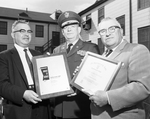 Mauricio Markmann of Washington has presented two top safety awards to the Fort Worth General Depot. Mauricio Markmann, Colonel Carl E. Green, and John R. Massey (left to right).