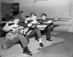 Charles Alford and Bill Wright, both of Technical High School, and Scott George of North Side High, are in position and ready to fire at Paschal High School Tuesday afternoon in the All-City rifle matches. The matches, which also were held at Technical High School, were won by Tech's team.