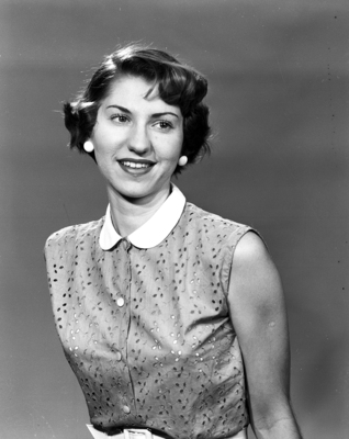 Image shows a bust shot of Miss Betty Boone, daughter of Mr. and Mrs. Dan L. Boone, 6345 Calmont. She left for Shreveport, Louisiana to meet Misses Chrys Turner, Shreveport and Betty Jo Bourne, Columbia, Mississippi. They will go to Miami, Florida and then to Nassau.