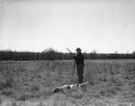 North Texas Bird Dog Association. Homer Pittman fires shot, flushes bird with leather strap.