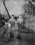 Michael Davit and Marcus Duffel, go wading in the creek.