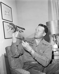 Captain Charles H. Young with model planes old and new.