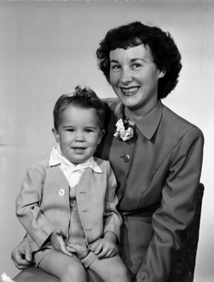 Image shows a shot of Mrs. Jack Cobb and her son, Jackie Cob of 5919 Malvey. She was installed as president of the Arlington Heights Lady Lions.