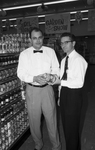 In charge. O. R. Pace, manager of Buddies No. 14, helps Ray Elridge, assistant, stock shelves of the newly opened store at 6528 Meadowbrook Dr.