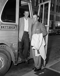 Bob Anderson, left, and Chick King, key figures in the Fort Worth Cats' drive to the 1958 Texas League championship, arrive in Fort Worth for the Chicago Cubs' game against Boston Red Sox at LaGrave Field.