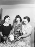 Mrs. Pat F. Dalton, Jr., Mrs. E. F. Fowlkes and Mrs. Robert F. Wilkinson, prepare for "Taste" luncheon of Court Louise 209, Catholic Daughters of America.