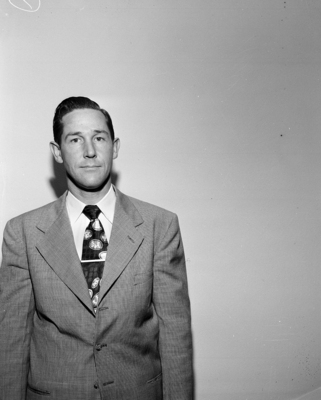 Image shows a bust shot of oil executive T. E. Vandiver. Vandiver is the division safety supervisor, Gulf Oil Corporation, Fort Worth production division.
