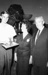 Kenneth Davis Sr. and wife with Bill Pelton representing 9th grade at Stripling Jr. High marking 100,000 visit of school child to Noble Planetarium at Children's Museum, Fort Worth, 05/01/1959