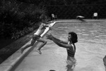 Linda Fitzgerald leaps into arms of Barbie Winter, swimming assistant through the Fort Worth Foundation for Visually Handicapped children, 07/01/1959