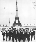 Texas Boys Choir of Fort Worth posing in front of the Eiffel Tower in Paris, 08/10/1959
