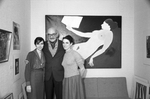 From left are Nancy Harrell, wife of Robert A. Ellison Jr.; artist Ben Johnson; and his wife Alice Terry. The three are posed in front of Johnson's "The Song," a nude painting of a woman on display at the Ellison Art Gallery in Fort Worth.