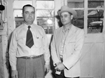 Bob Steen (left) and County Agent Georgw Reese are two of the men in Goldthwaite and Mills County who have devoted much time and effort to building up the club calf feeding program. Published in Fort Worth Star-Telegram morning edition, April 2, 1950. Two men standing together in formally dressed clothes. One man has a cowboy hat.