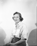 Janet Hopkins (wearer of the bright pink jester blouse above) is one of the "springiest" gals around the Star-Telegram office. Published in Fort Worth Star-Telegram morning edition, March 1950.