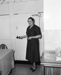Mrs. Nettie Mae Graham pays a visit to the large walk-in cooler to get a thick steak or one of the other many other delicious items stored therein. Published in Fort Worth Star-Telegram morning edition May 7, 1950.