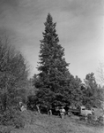 This huge white fir tree, photographed in its native habitat, the towering Sacramento Mountains of New Mexico, was brought by a tree hunting expedition arranged by the Star-Telegram. The tree was erected in Burk Burnett Park for Fort Worth's first community Christmas celebration in 10 years. The view of the 60-foot tree shows woodsmen clearing underbrush before the tree was cut and lowered with ropes. Published in the Fort Worth Star-Telegram morning edition, November 12, 1950.