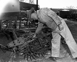 Image shows J. L. Brooks inspecting a rotary hoe on his farm in Childress County. Published in the Fort Worth Star-Telegram March 1951.