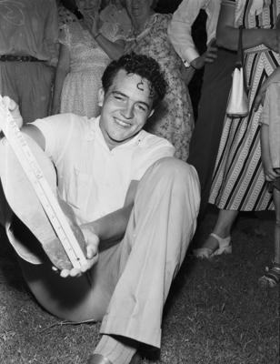 First places in contests sponsored by the City Park Department were won by Nathan Hellums, Rising Star, biggest feet (12 and 1/4 inches). Published in the Fort Worth Star-Telegram morning edition, July 05, 1950.
