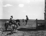 Mrs. Horne and Jackie get a report from Ranch Foreman Howard Quinn and her older son, Jimmy, after the two riders check the ranch's commercial and registered Herefords.