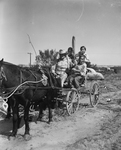 Early French and his buggy are a familiar sight when the Hockley County Sheriff's Posse assembles. He is shown with a group of his grandchildren, at the Yellow House Ranch ride.