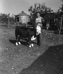 Donald Denton, another Howard County 4-H boy, stands here with his calf which will be ready for spring shows. The county program includes 50 calves on feed this year.