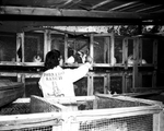 Image shows Gwyn Wilson feeding her prize rabbit. Her hobby of raising rabbits has grown into a profitable business for her and her dad.