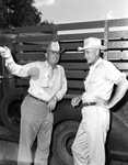 Jess J. Spencer, left, Hopkins County stock farmer, talks with County Agent Brooks Emmons as they look over the pastures and cattle on Spencer's from east of Sulphur Springs.
