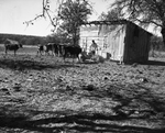 Series on the Merion Reynolds farm in Mills County. Young Reynolds invested his own winnings and sales receipts in good livestock and a 200-acre Mills County farm. This photo shows some of his cattle in the feedlot.