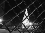 Tree taken at night looking through fence.