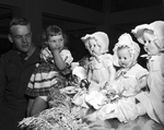 Donna Smith eyes dolls ready for distribution as Private Eddie East, an ex-resident of Lena Pope Home now in the army, hold her up for a better look.