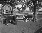 Ranch & Farm. Narvey Clinton, Young County. 4-h Club boy shown grooming calves.