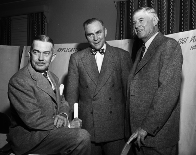 For Texas Southwestern Cattle Raisers Association's quarterly meeting of directors were, left to right, Ray W. Willoughby of San Angelo, association first vice president; Major General Harry H. Johnson, U. S. coordinator of the Aftosa eradication program in Mexico, and Bryan Edwards of Henrietta, association president.