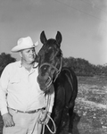 Jess Hankins and his champion quarter horse, "King". Published in Fort Worth Star-Telegram evening edition May 1952.